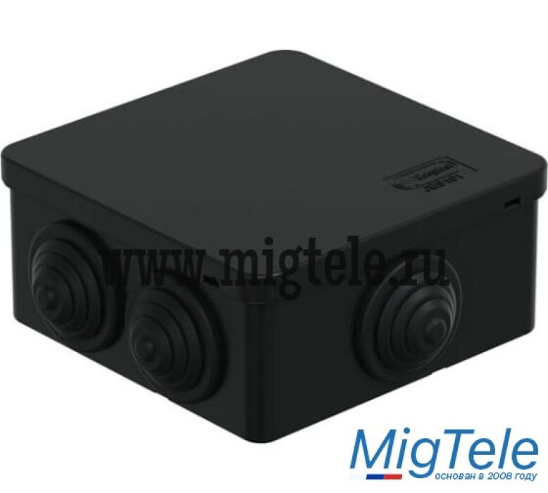 JBS101 Коробка распределительная о/п, 100х100х55мм 6 вых., IP55 цвет чёрный (упаковка DIY) Экопласт