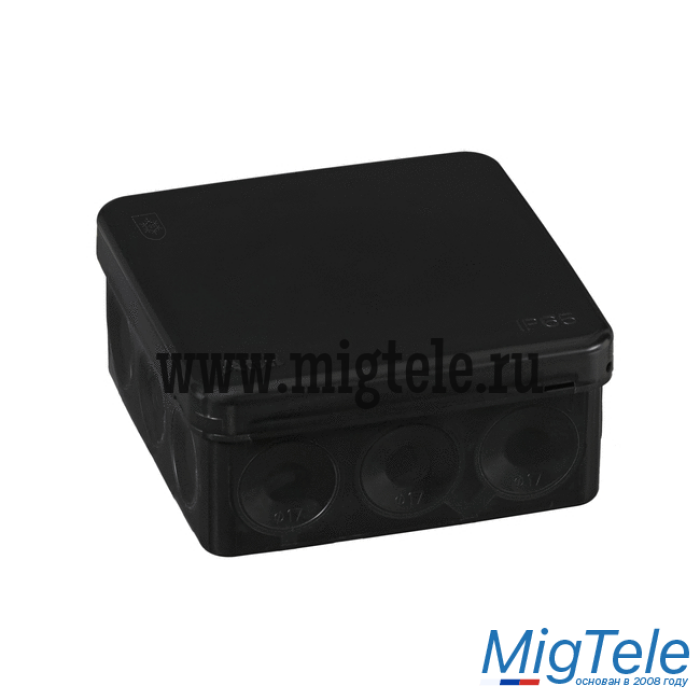 JBL085 Коробка распределительная без сальников о/п, 85х85х38мм 12вых., IP55 цвет чёрный, подходит для монтаж. пистолета (упаковка DIY) Экопласт