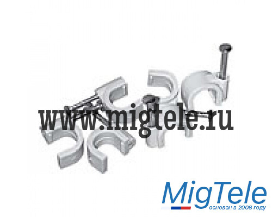 Скоба пластиковая круглая с гвоздем в комплекте предназначена для крепления провода или кабеля к несущим конструкциям и различным поверхностям.