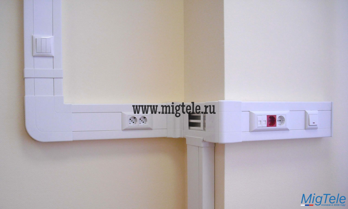 Система коробов адаптирована к условиям инсталяции и размещению слаботочной и силовой электропроводки по Евростандарту.