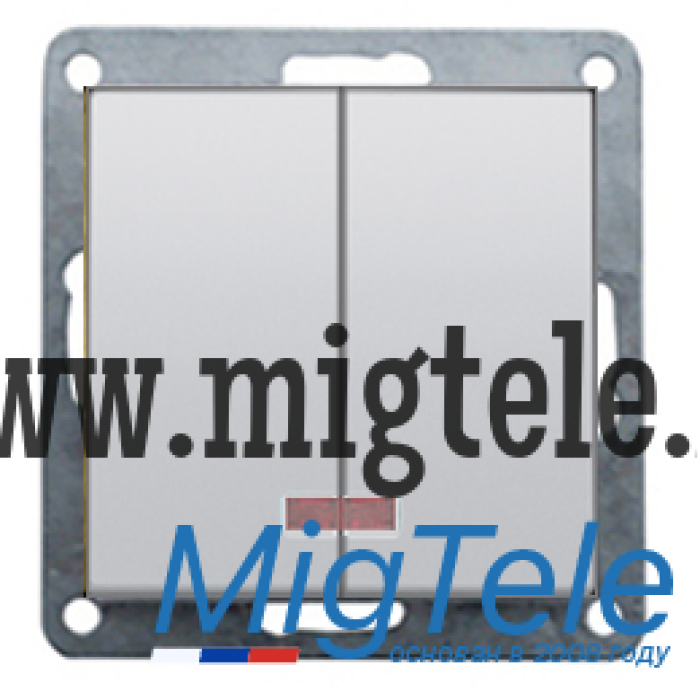 Выключатель 2-кл., с индикаторами (схема 5L) 16 A, 250 B (серебристый металлик) LK80