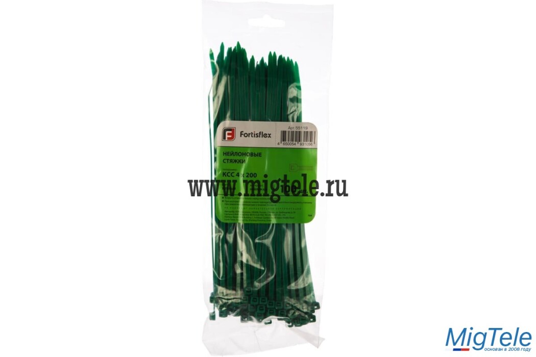Стяжки нейлоновые КСС 4*200 (зел) (100шт.) (Fortisflex)