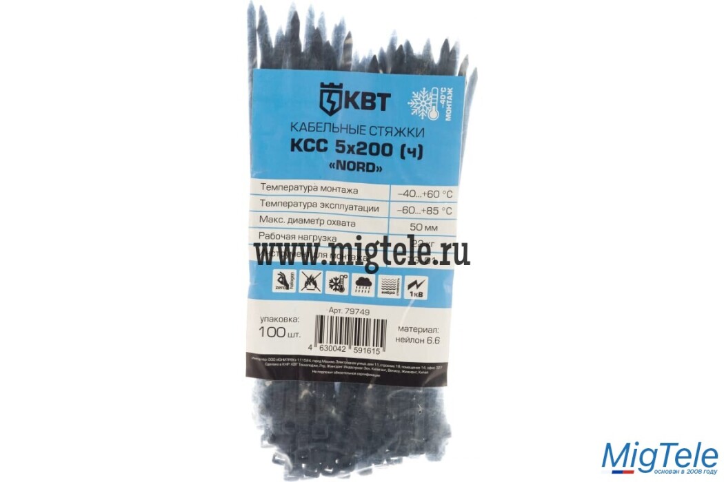 Стяжки кабельные КСС "NORD" 5х200 (ч) (100шт.)