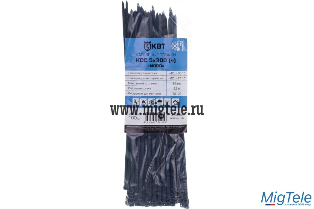 Стяжки кабельные КСС "NORD" 5х300 (ч) (100шт.)