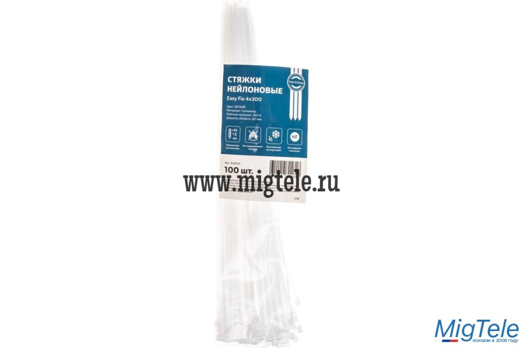 Стяжки нейлоновые НСС "EasyFix" 4*300 (б) (100 шт.) (Fortisflex)