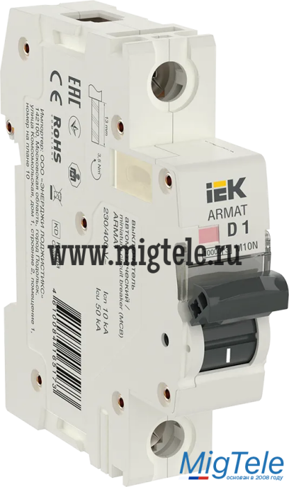 Описание IEK AR-M10N-1-D001 ARMAT Авт. выкл. M10N 1P D 1А