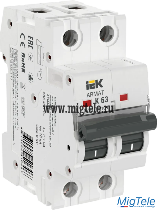 Описание IEK AR-M10N-2-K063 ARMAT Авт. выкл. M10N 2P K 63А