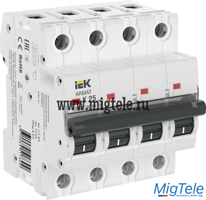 Описание IEK AR-M10N-4-K025 ARMAT Авт. выкл. M10N 4P K 25А