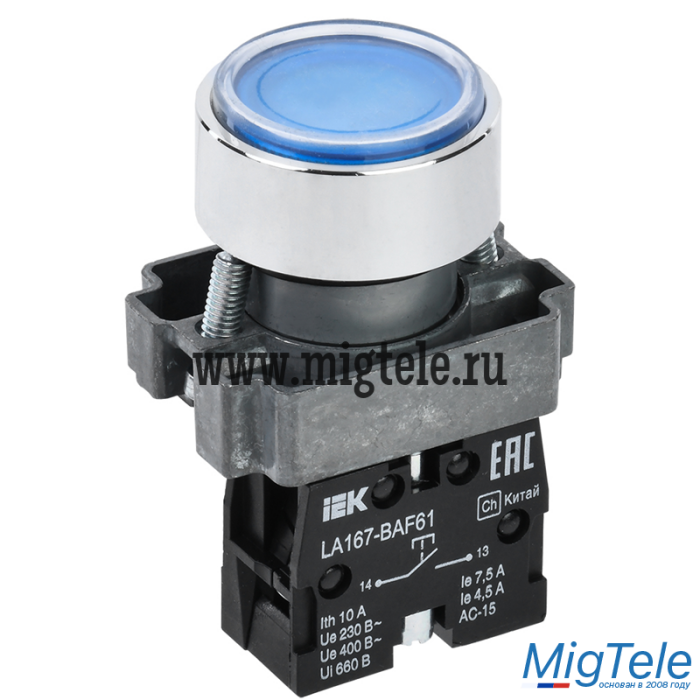 Кнопка LA167-BAF61 d=22мм 1з синяя IEK |