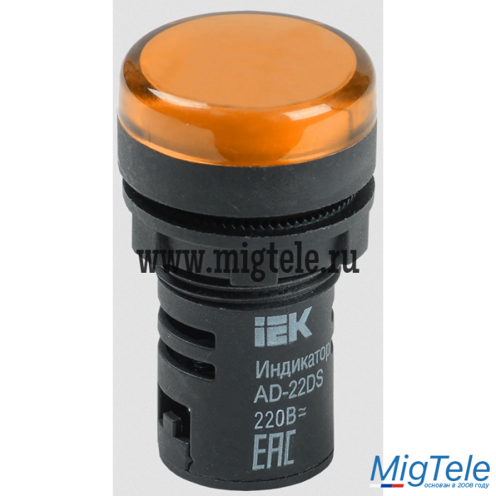 Лампа AD22DS(LED)матрица d22мм желтый 230В IEK |