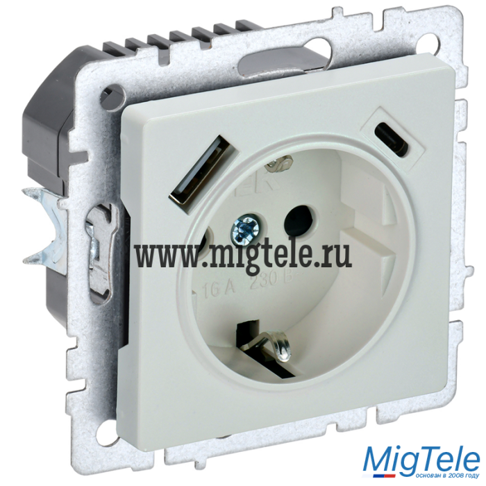 IEK BR-R14-16-U22-018-K36 BRITE Роз. с з/к/ш 16А с USB A+C 18Вт