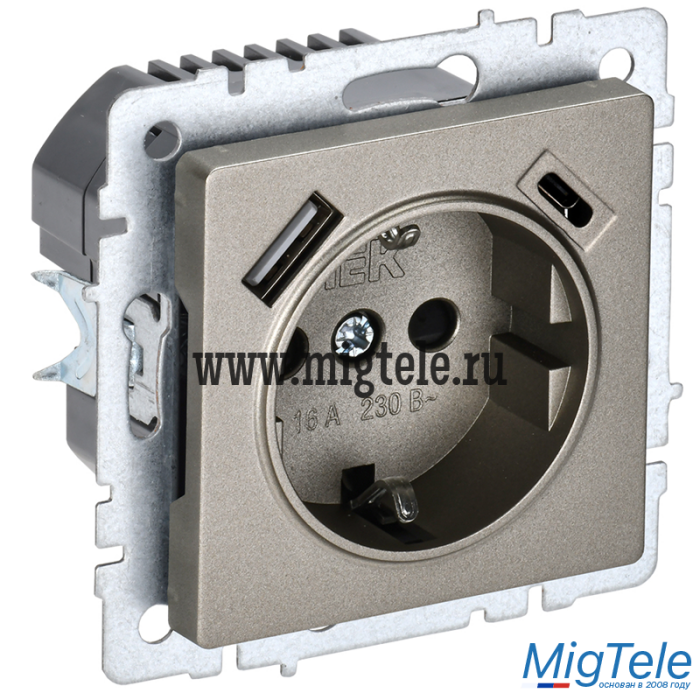 IEK BR-R14-16-U22-018-K37 BRITE Роз. с з/к/ш 16А с USB A+C 18Вт