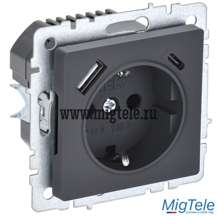 BRITE Роз. с з/к/ш 16А с USB A+C 18Вт РЮш11-1-БрГ граф. IEK |