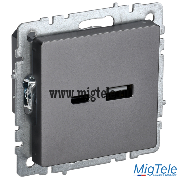 BRITE Роз. USB A+C 18Вт РЮ11-1-БрС сталь IEK |
