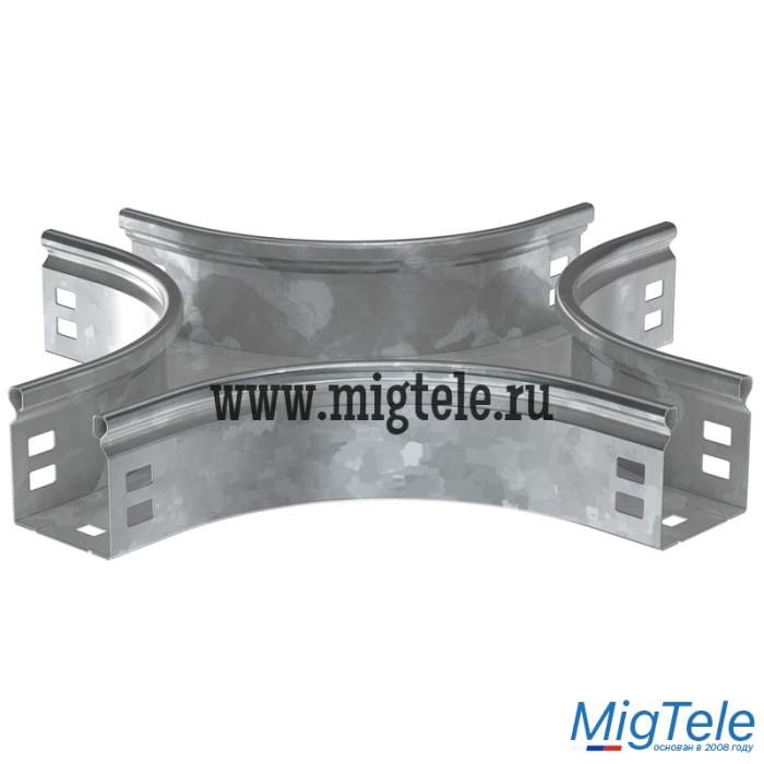 Крестовина плавная предназначена для организации X-образного ответвления кабельной трассы. Крышка аксессуара в комплект не входит. Аксессуар изготовлен из стали с цинковым покрытием, нанесенным погружением изделий в расплав цинка (защитный слой цинка не менее 55 мкм).
