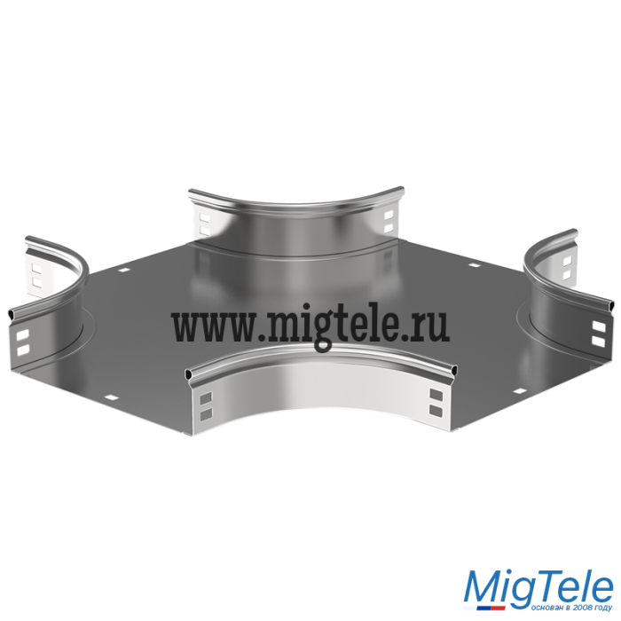 Крестовина плавная предназначена для организации X-образного ответвления кабельной трассы. Крышка аксессуара в комплект не входит. Аксессуар изготовлен из стали горячего цинкования методом Сендзимира (защитный слой цинка не менее 10 мкм).