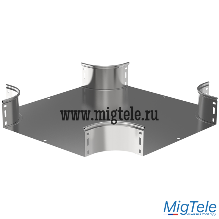 Крестовина плавная предназначена для организации X-образного ответвления кабельной трассы. Крышка аксессуара в комплект не входит. Аксессуар изготовлен из стали горячего цинкования методом Сендзимира (защитный слой цинка не менее 10 мкм).