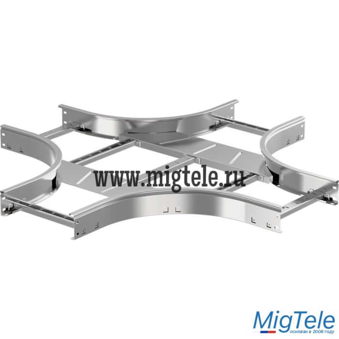 Лестничная крестовина применяется для организации Х-образного ответвления кабельной трассы. Плавный радиус изгиба бортов обеспечивает безопасную прокладку кабеля. Усиливающие элементы конструкции придают крестовине дополнительную прочность. Крышка поставляется отдельно.