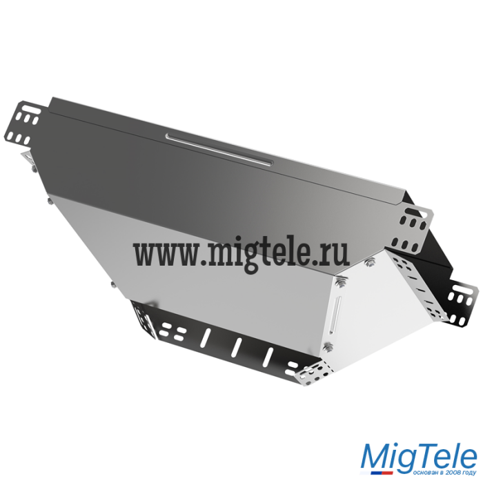Ответвитель Т-образный вертикальный вниз боковой предназначен для организации Т-образного отвода кабельной трассы вниз с изменением направления лотка на 90 градусов. Аксессуар поставляется в комплекте с крышкой. Аксессуар изготовлен из стали с цинковым покрытием, нанесенным погружением изделий в расплав цинка (защитный слой цинка не менее 55 мкм).