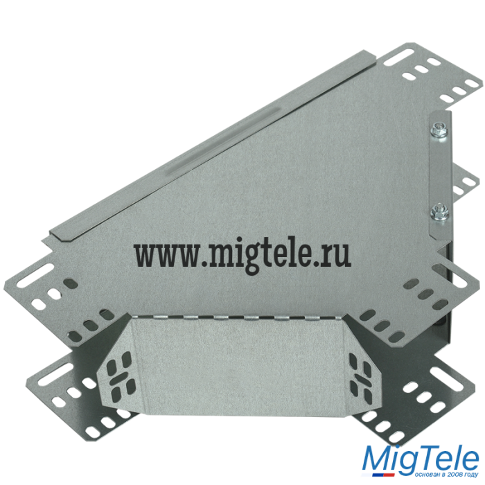 Ответвитель Т-образный вертикальный вниз боковой предназначен для организации Т-образного отвода кабельной трассы вниз с изменением направления лотка на 90 градусов. Аксессуар поставляется в комплекте с крышкой. Аксессуар изготовлен из стали горячего цинкования методом Сендзимира (защитный слой цинка не менее 10 мкм).