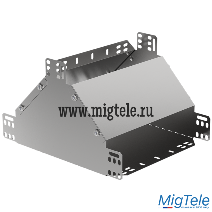 Ответвитель Т-образный вертикальный вверх предназначен для организации Т-образного отвода кабельной трассы вверх без изменения направления лотка. Аксессуар изготовлен из стали с цинковым покрытием, нанесенным погружением изделий в расплав цинка (защитный слой цинка не менее 55 мкм).