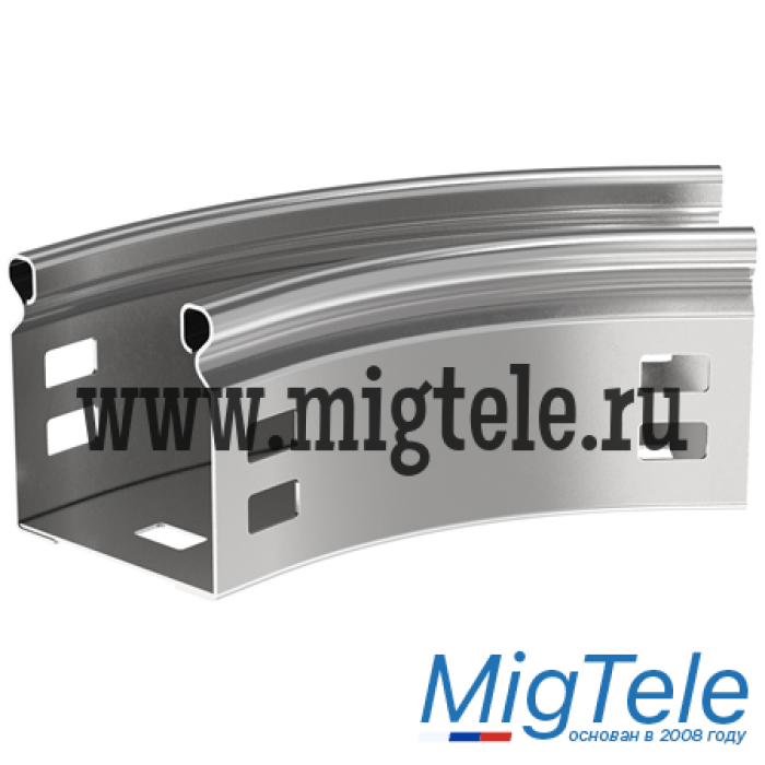 Поворот на 45° плавный предназначен для организации горизонтального поворота кабельной трассы на 45°. Крышка аксессуара в комплект не входит. Аксессуар изготовлен из стали горячего цинкования методом Сендзимира (защитный слой цинка не менее 10 мкм).