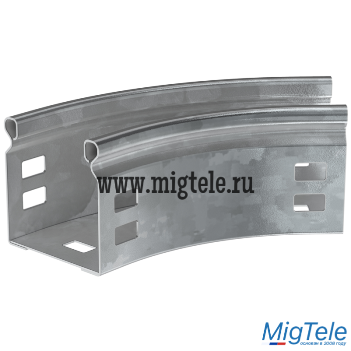 Поворот на 45° плавный предназначен для организации горизонтального поворота кабельной трассы на 45°. Крышка аксессуара в комплект не входит. Аксессуар изготовлен из стали с цинковым покрытием, нанесенным погружением изделий в расплав цинка (защитный слой цинка не менее 55 мкм).