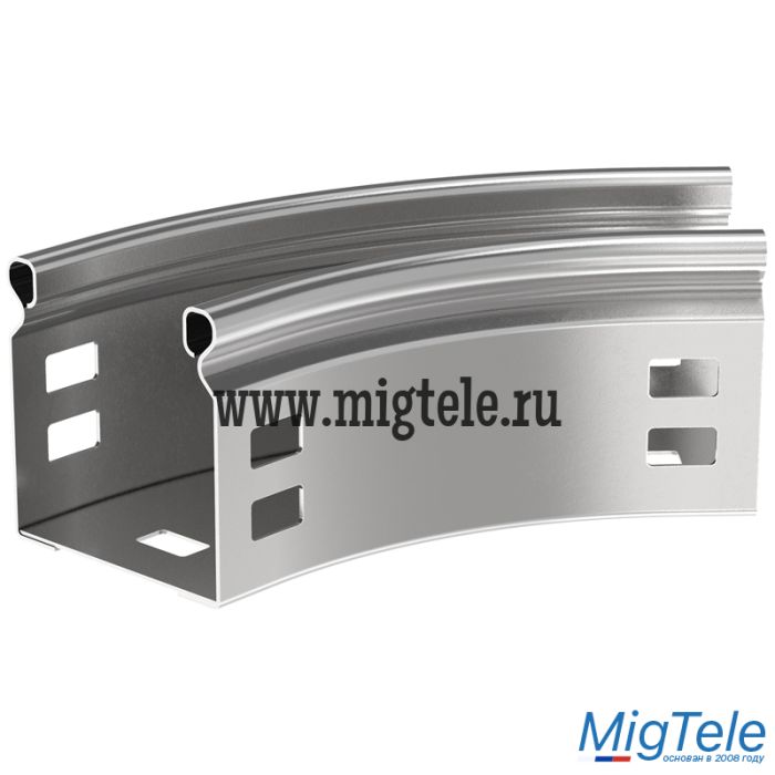 Поворот на 45° плавный предназначен для организации горизонтального поворота кабельной трассы на 45°. Крышка аксессуара в комплект не входит. Аксессуар изготовлен из стали горячего цинкования методом Сендзимира (защитный слой цинка не менее 10 мкм).