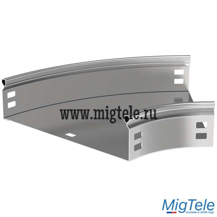 Поворот на 45° плавный предназначен для организации горизонтального поворота кабельной трассы на 45°. Крышка аксессуара в комплект не входит. Аксессуар изготовлен из стали горячего цинкования методом Сендзимира (защитный слой цинка не менее 10 мкм).