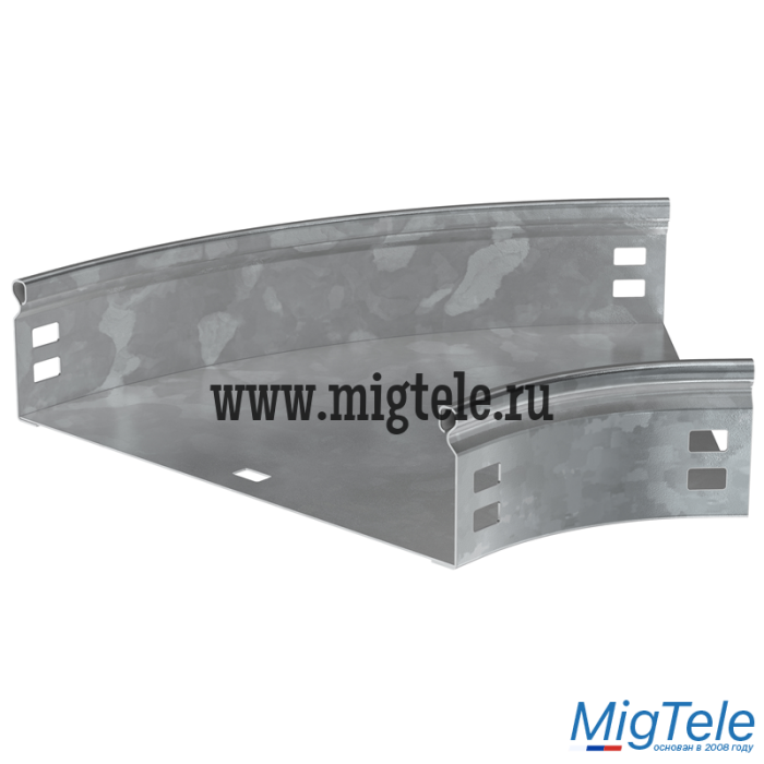 Поворот на 45° плавный предназначен для организации горизонтального поворота кабельной трассы на 45°. Крышка аксессуара в комплект не входит. Аксессуар изготовлен из стали с цинковым покрытием, нанесенным погружением изделий в расплав цинка (защитный слой цинка не менее 55 мкм).