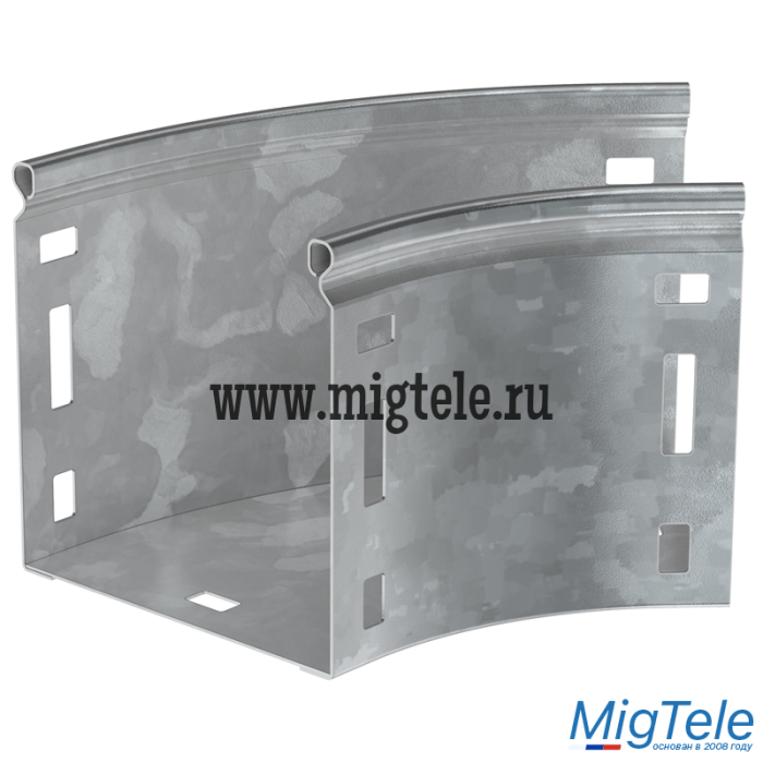 Поворот на 45° плавный предназначен для организации горизонтального поворота кабельной трассы на 45°. Крышка аксессуара в комплект не входит. Аксессуар изготовлен из стали с цинковым покрытием, нанесенным погружением изделий в расплав цинка (защитный слой цинка не менее 55 мкм).