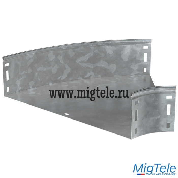Поворот на 45° плавный предназначен для организации горизонтального поворота кабельной трассы на 45°. Крышка аксессуара в комплект не входит. Аксессуар изготовлен из стали с цинковым покрытием, нанесенным погружением изделий в расплав цинка (защитный слой цинка не менее 55 мкм).