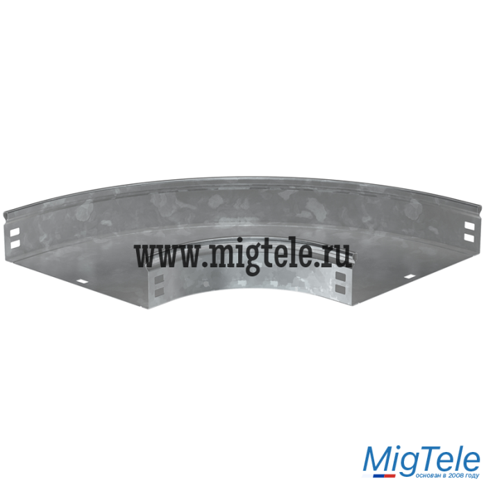 Поворот на 90° плавный предназначен для организации горизонтального поворота кабельной трассы на 90°. Крышка аксессуара в комплект не входит. Аксессуар изготовлен из стали с цинковым покрытием, нанесенным погружением изделий в расплав цинка (защитный слой цинка не менее 55 мкм).