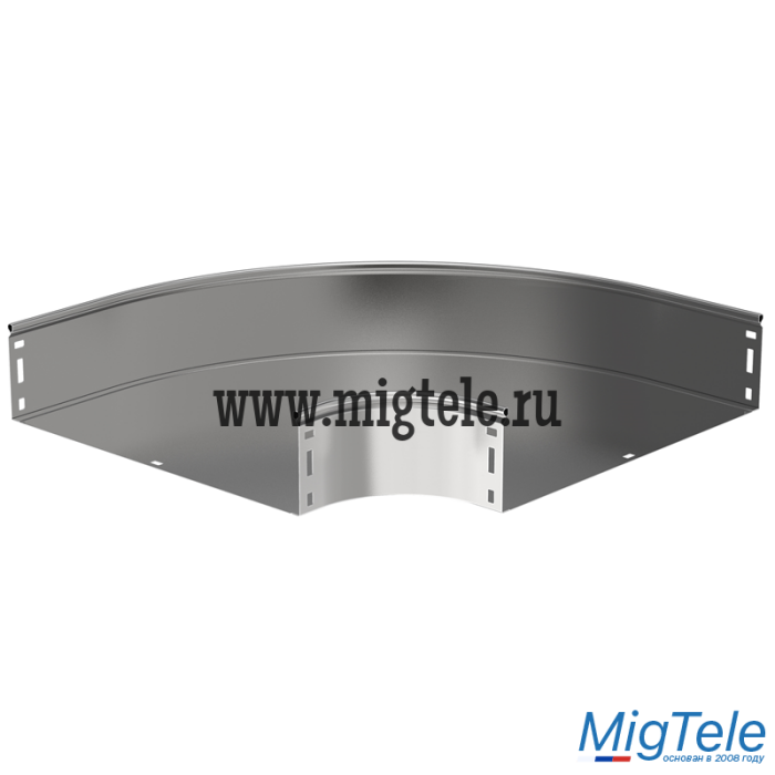 Поворот на 90° плавный предназначен для организации горизонтального поворота кабельной трассы на 90°. Крышка аксессуара в комплект не входит. Аксессуар изготовлен из стали горячего цинкования методом Сендзимира (защитный слой цинка не менее 10 мкм).