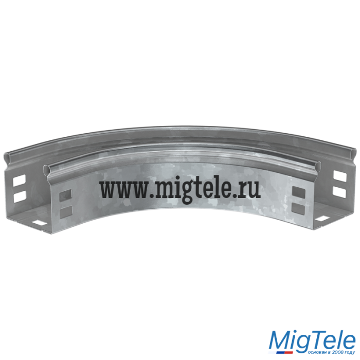 Поворот на 90° плавный предназначен для организации горизонтального поворота кабельной трассы на 90°. Крышка аксессуара в комплект не входит. Аксессуар изготовлен из стали с цинковым покрытием, нанесенным погружением изделий в расплав цинка (защитный слой цинка не менее 55 мкм).