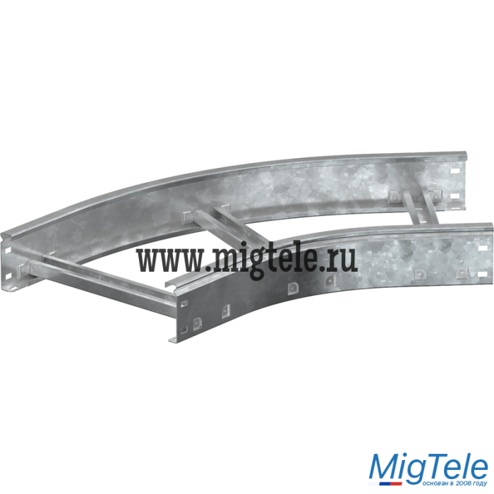 Применяется для организации поворота кабельной трассы на 45° в горизонтальной плоскости с радиусом поворота 300 мм. Изготавливается из рулонной холоднокатанной стали с последующим нанесением защитного цинкового покрытия методом погружения в расплав (ГОСТ 9.307-89).