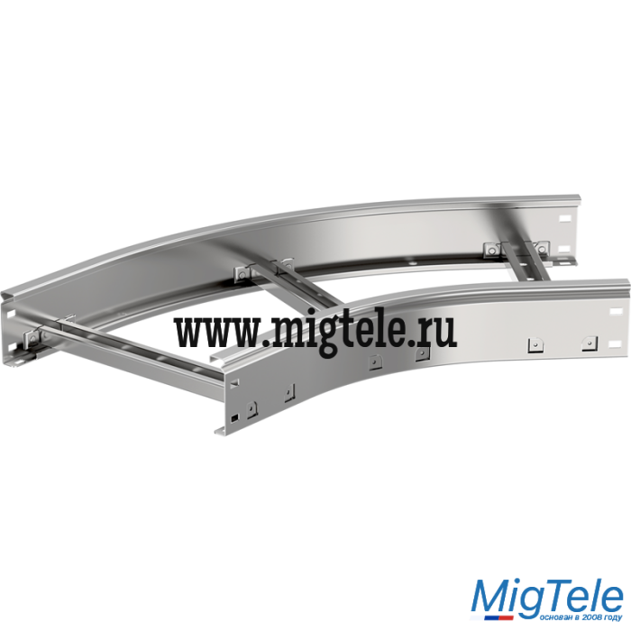 Применяется для организации поворота кабельной трассы на 45° в горизонтальной плоскости с радиусом поворота 300 мм. Изготавливается из рулонной холоднокатанной стали предварительно оцинкованной по методу Сендзимира (ГОСТ 14918-2020).