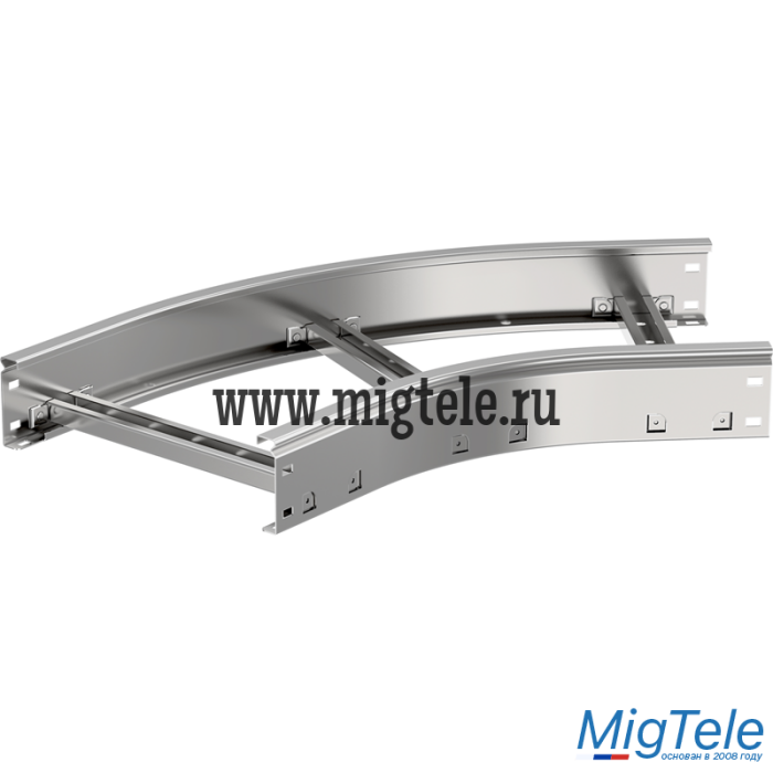 Применяется для организации поворота кабельной трассы на 45° в горизонтальной плоскости с радиусом поворота 300 мм. Изготавливается из рулонной холоднокатанной стали предварительно оцинкованной по методу Сендзимира (ГОСТ 14918-2020).
