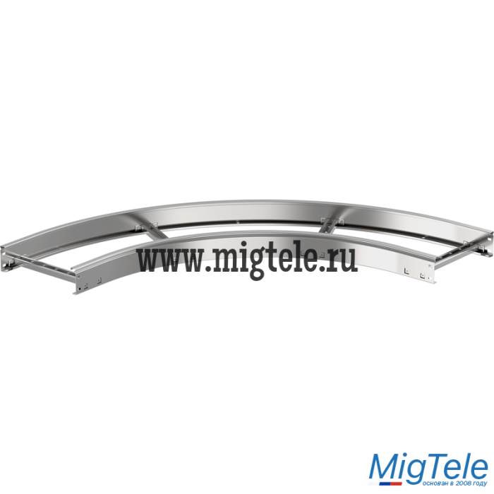 Применяется для организации поворота кабельной трассы на 90° в горизонтальной плоскости с радиусом поворота 600 мм. Изготавливается из рулонной холоднокатанной стали предварительно оцинкованной по методу Сендзимира (ГОСТ 14918-2020).