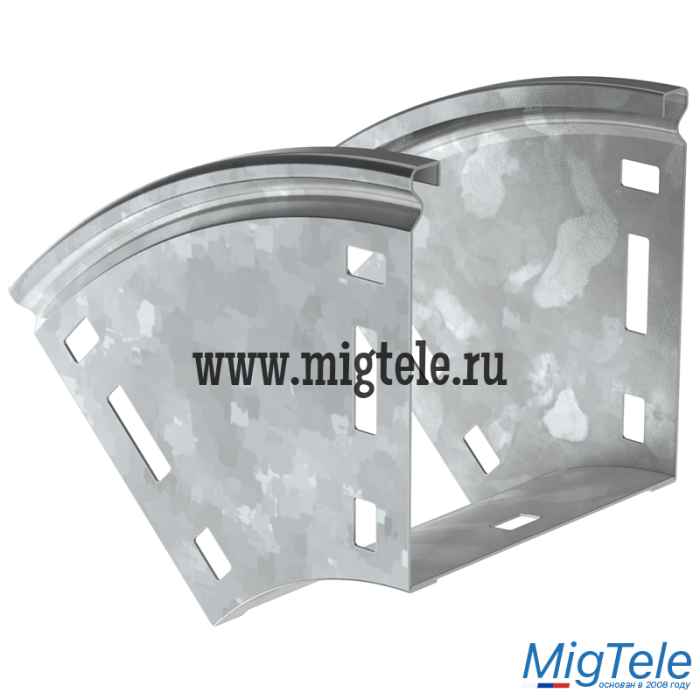 Поворот на 45° вертикальный внешний плавный предназначен для организации вертикального внешнего поворота кабельной трассы на 45°. Крышка аксессуара в комплект не входит. Аксессуар изготовлен из стали с цинковым покрытием, нанесенным погружением изделий в расплав цинка (защитный слой цинка не менее 55 мкм).