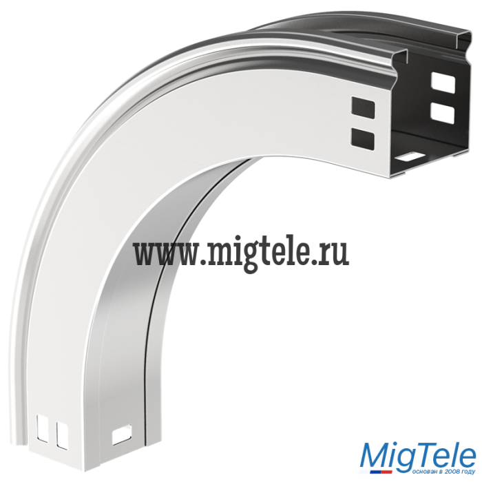 Поворот на 90° вертикальный внешний плавный предназначен для организации вертикального внешнего поворота кабельной трассы на 90°. Крышка аксессуара в комплект не входит. Аксессуар изготовлен из стали горячего цинкования методом Сендзимира (защитный слой цинка не менее 10 мкм).