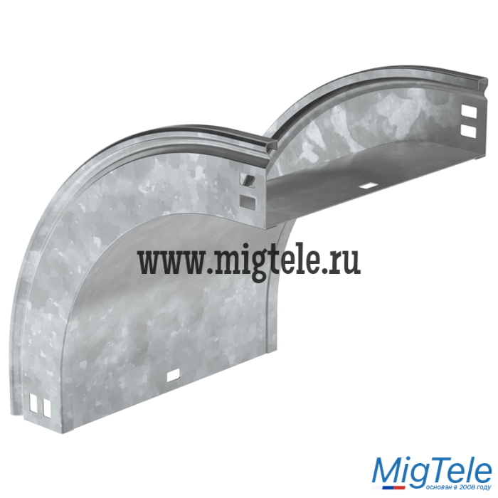 Поворот на 90° вертикальный внешний плавный предназначен для организации вертикального внешнего поворота кабельной трассы на 90°. Крышка аксессуара в комплект не входит. Аксессуар изготовлен из стали с цинковым покрытием, нанесенным погружением изделий в расплав цинка (защитный слой цинка не менее 55 мкм).