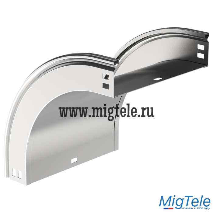 Поворот на 90° вертикальный внешний плавный предназначен для организации вертикального внешнего поворота кабельной трассы на 90°. Крышка аксессуара в комплект не входит. Аксессуар изготовлен из стали горячего цинкования методом Сендзимира (защитный слой цинка не менее 10 мкм).