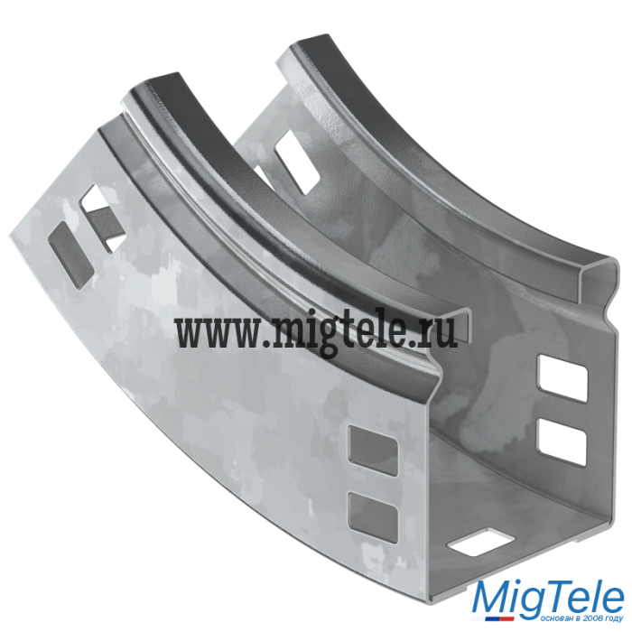 Поворот на 45° вертикальный внутренний плавный предназначен для организации вертикального внутреннего поворота кабельной трассы на 45°. Крышка аксессуара в комплект не входит. Аксессуар изготовлен из стали с цинковым покрытием, нанесенным погружением изделий в расплав цинка (защитный слой цинка не менее 55 мкм).