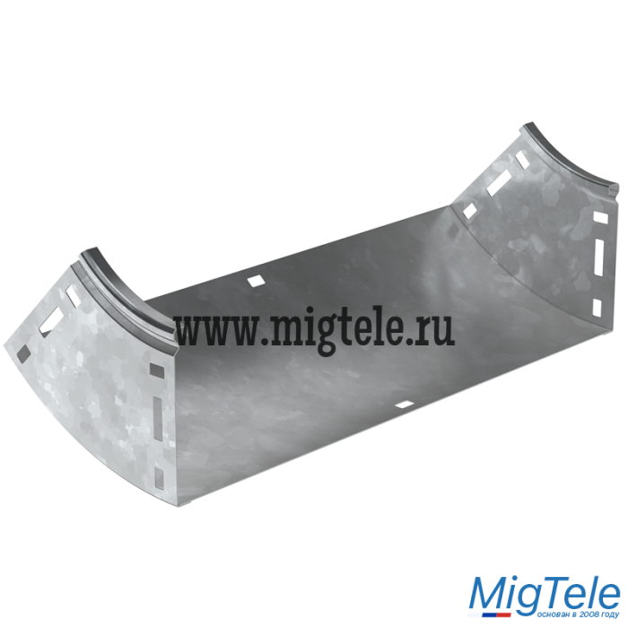 Поворот на 45° вертикальный внутренний плавный предназначен для организации вертикального внутреннего поворота кабельной трассы на 45°. Крышка аксессуара в комплект не входит. Аксессуар изготовлен из стали с цинковым покрытием, нанесенным погружением изделий в расплав цинка (защитный слой цинка не менее 55 мкм).