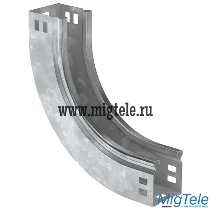 Поворот на 90° вертикальный внутренний плавный предназначен для организации вертикального внутреннего поворота кабельной трассы на 90°. Крышка аксессуара в комплект не входит. Аксессуар изготовлен из стали с цинковым покрытием, нанесенным погружением изделий в расплав цинка (защитный слой цинка не менее 55 мкм).