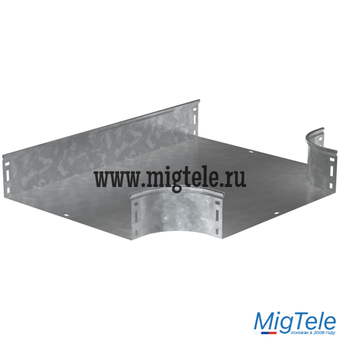 Разветвитель Т-образный плавный предназначен для организации Т-образного ответвления кабельной трассы. Крышка аксессуара в комплект не входит. Аксессуар изготовлен из стали с цинковым покрытием, нанесенным погружением изделий в расплав цинка (защитный слой цинка не менее 55 мкм).