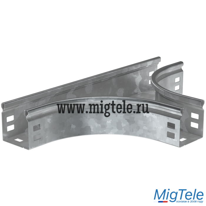 Разветвитель Т-образный плавный предназначен для организации Т-образного ответвления кабельной трассы. Крышка аксессуара в комплект не входит. Аксессуар изготовлен из стали с цинковым покрытием, нанесенным погружением изделий в расплав цинка (защитный слой цинка не менее 55 мкм).