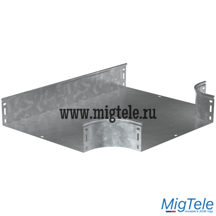 Разветвитель Т-образный плавный предназначен для организации Т-образного ответвления кабельной трассы. Крышка аксессуара в комплект не входит. Аксессуар изготовлен из стали с цинковым покрытием, нанесенным погружением изделий в расплав цинка (защитный слой цинка не менее 55 мкм).