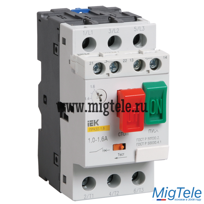 Пускатели серии ПРК-32 торговой марки IEK предназначены для управления и защиты трехфазных асинхронных электродвигателей от перегрузки, коротких замыканий и неполнофазных режимов работы. Совмещают в себе несколько функций: функции "Автомата защиты двигателя" и функции ручного пускателя. Применяются на промышленных объектах, в сельском хозяйстве, строительстве. Также возможно использование для местного управления отдельными электродвигателями, в автоматике жилых и административных сооружений. Категория применения АС-3. По своим конструктивным и техническим характеристикам пускатели кнопочные серии ПРК соответствуют требованиям российских и международных стандартов ГОСТ Р 50030.2-99, ГОСТ Р 50030.4.1-2002. Пускатели кнопочные серии ПРК прошли сертификационные испытания и на их серийный выпуск получен сертификат соответствия РОСС С-МЕ01.В04759. Типоисполнение реле РТИ-3353; РТИ-3355 РТИ-3357; РТИ-3359 РТИ-3361; РТИ-3363 РТИ-3365. Высокая точность срабатывания. Удобная регулировка. Широкий ассортимент.